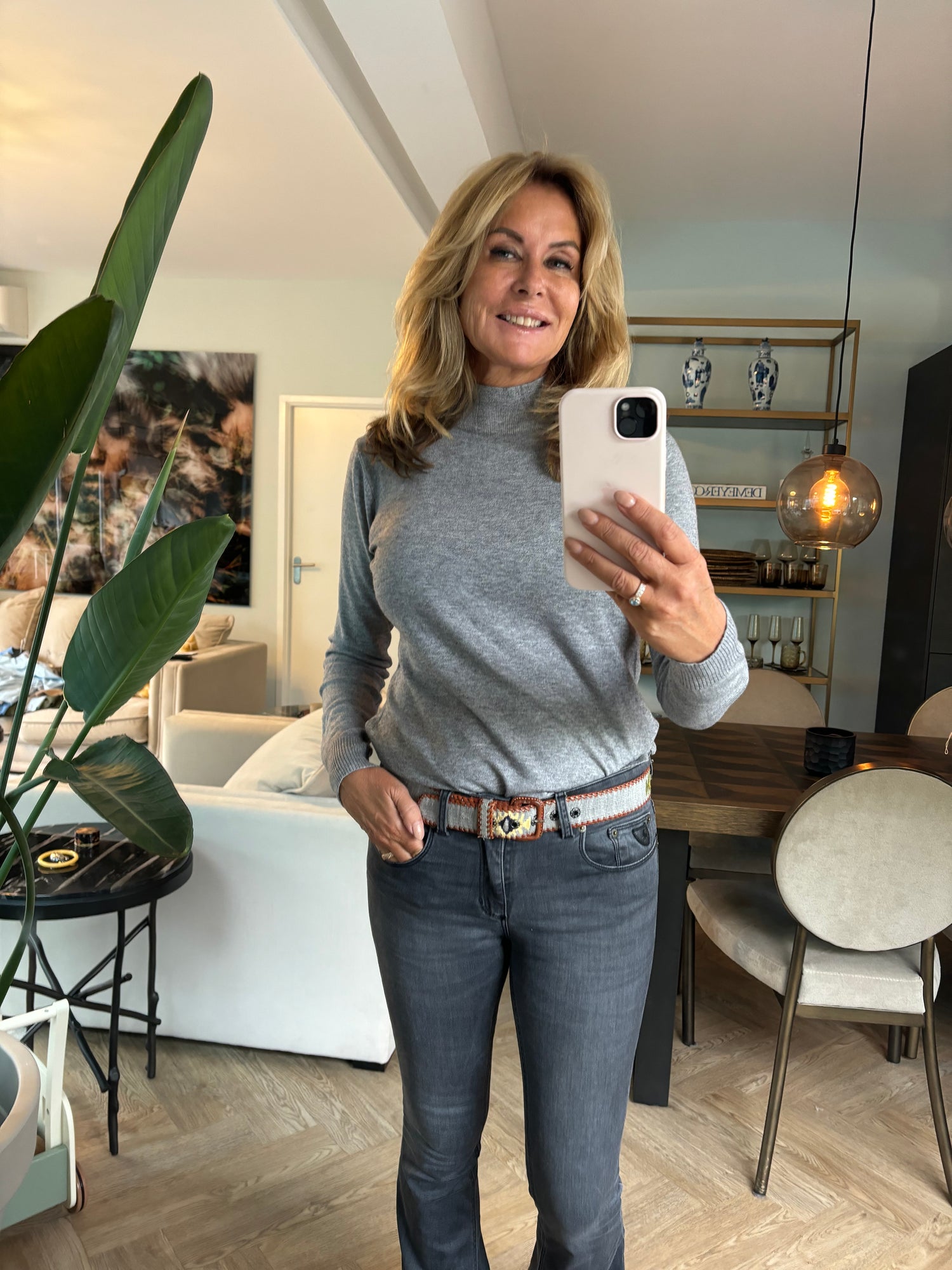 Dit heerlijk zachte grijze truitje met cashmere is in diverse kleuren verkrijgbaar...