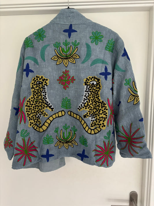 Jasje lichtblauw katoen luipaard