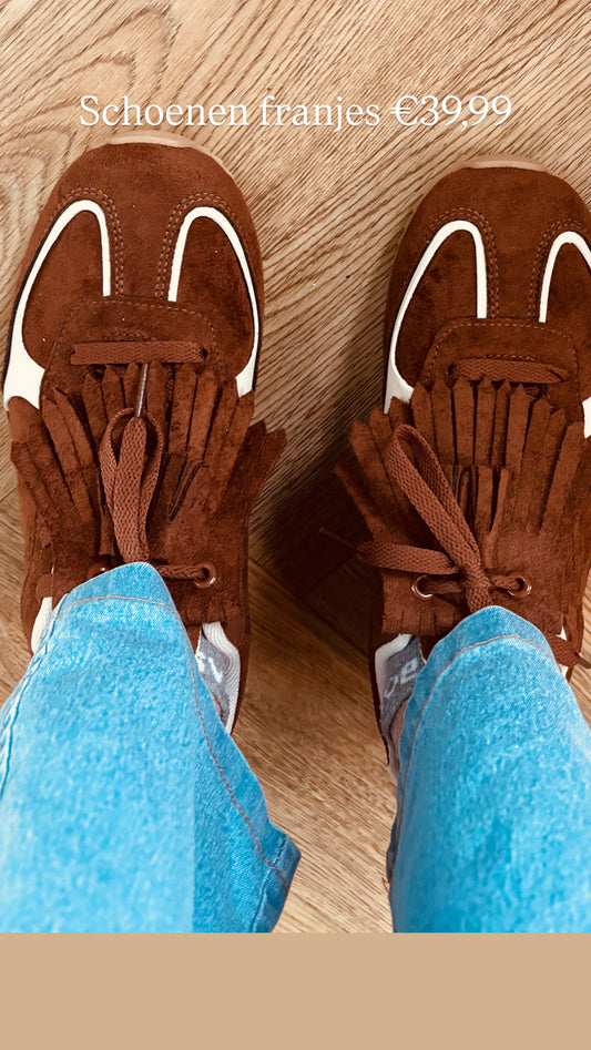 Sneaker franje cognac