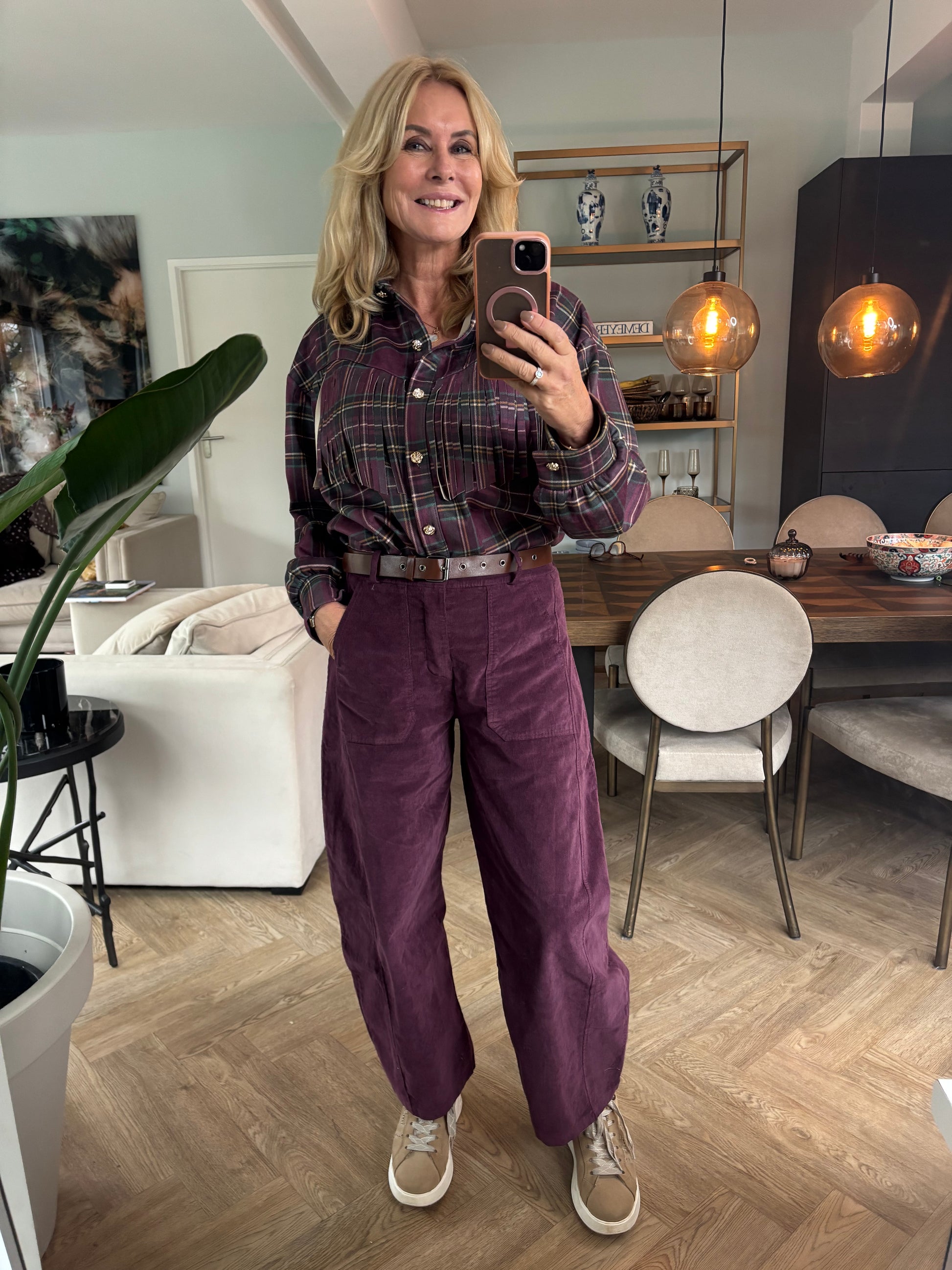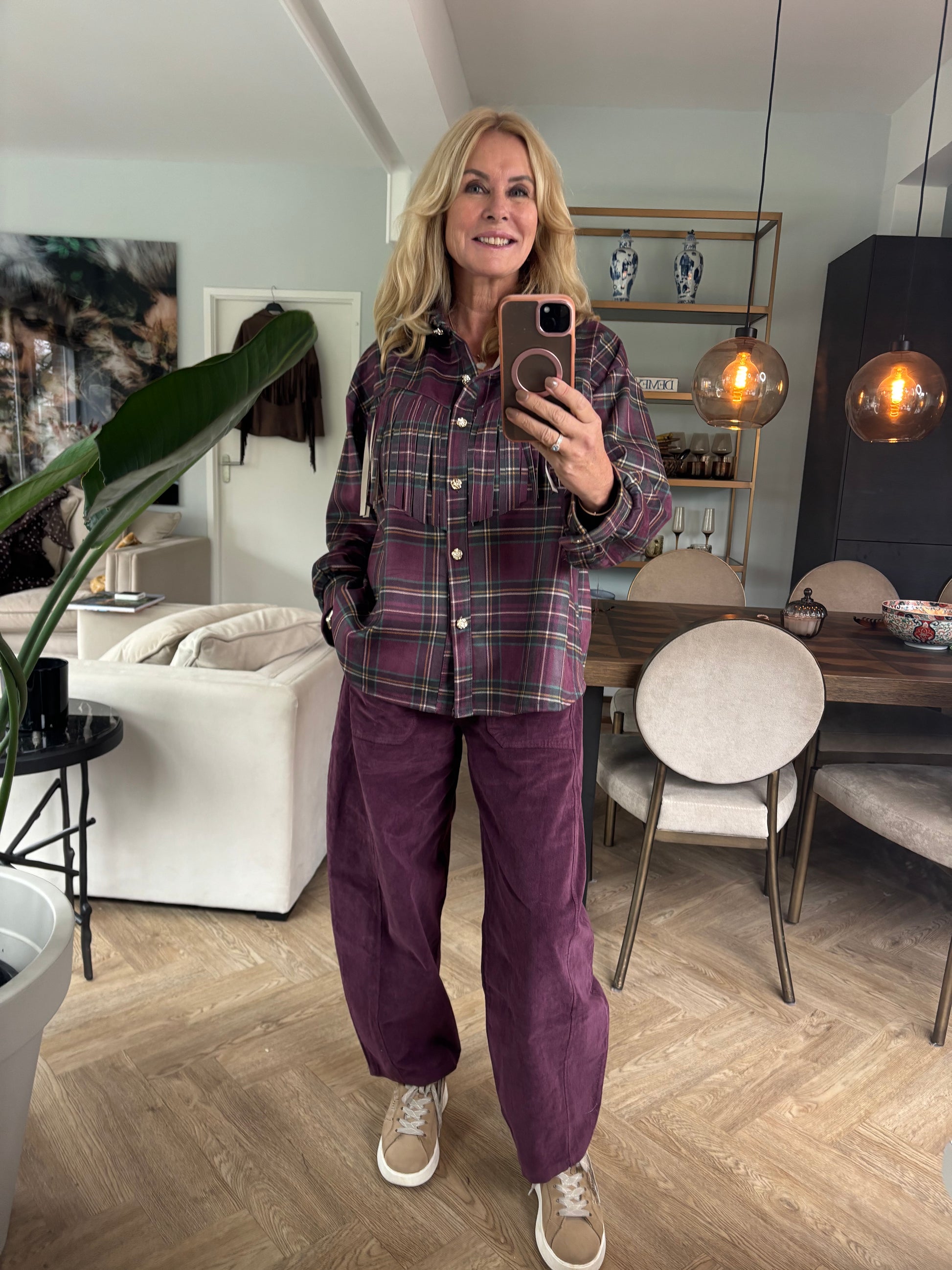 Dit bordeaux rode ruit blouse jasje met franjes is ook in bruin verkrijgbaar en is 1 maat .