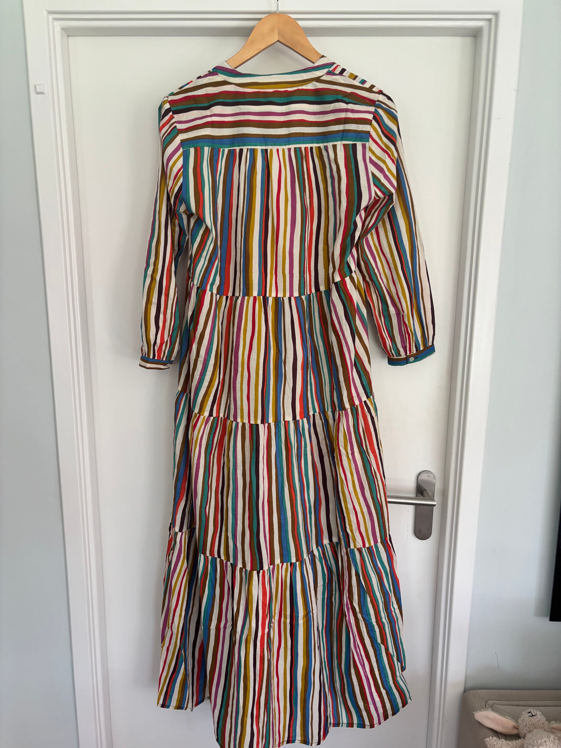 Kleurrijke gestreepte maxi jurk , die kleur aan je garderobe brengt vol met levendige strepen.
