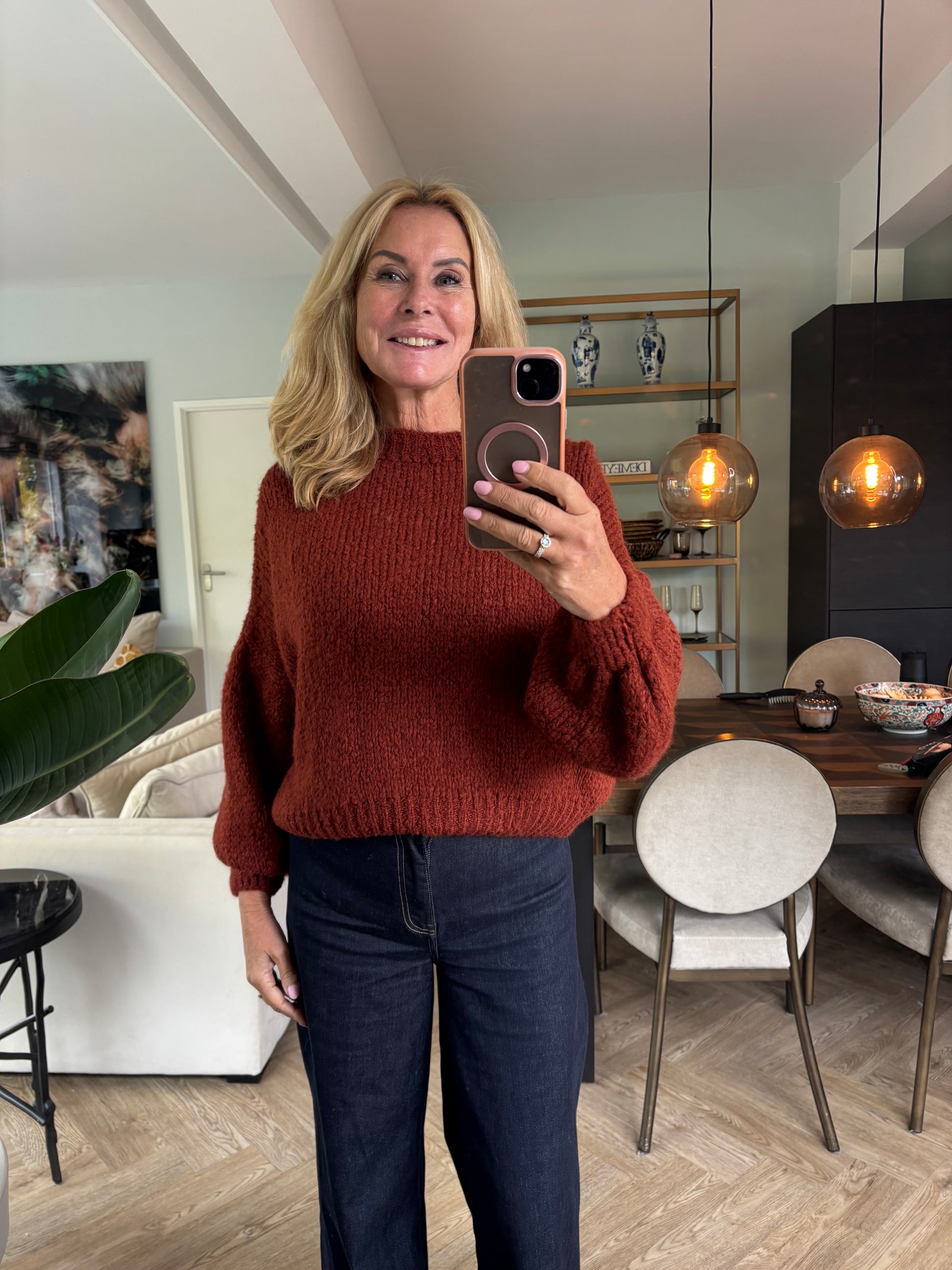 Deze mooie terra kleur trui is er in diverse kleuren en in 1 maat verkrijgbaar.