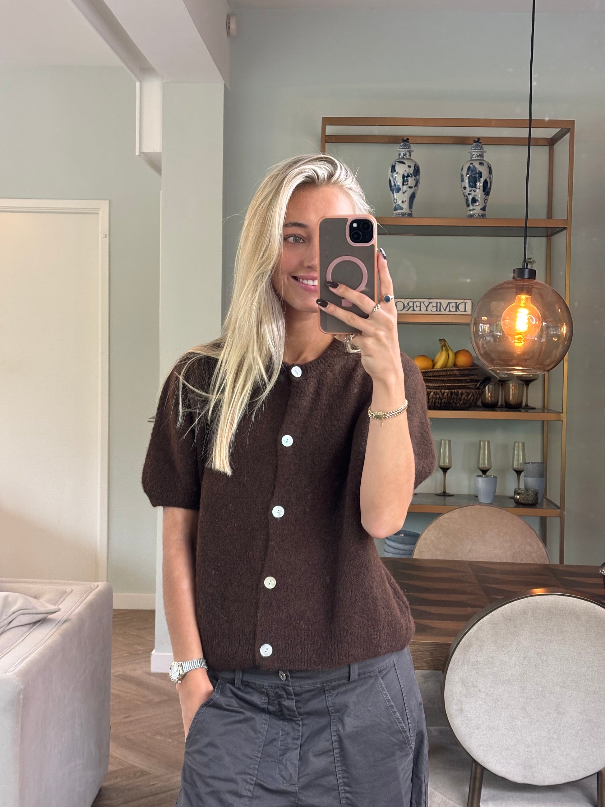 Dit camel kleurige vestje is in diverse kleuren en in 1 maat verkrijgbaar.